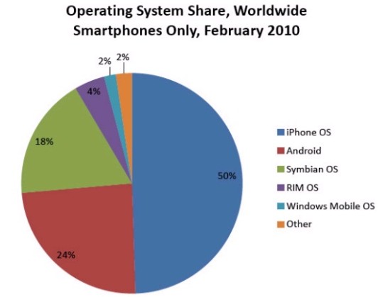 iPhone操作系統(tǒng)占據(jù)智能手機上網(wǎng)流量半壁江山