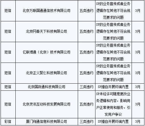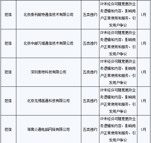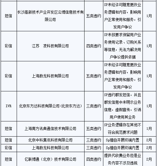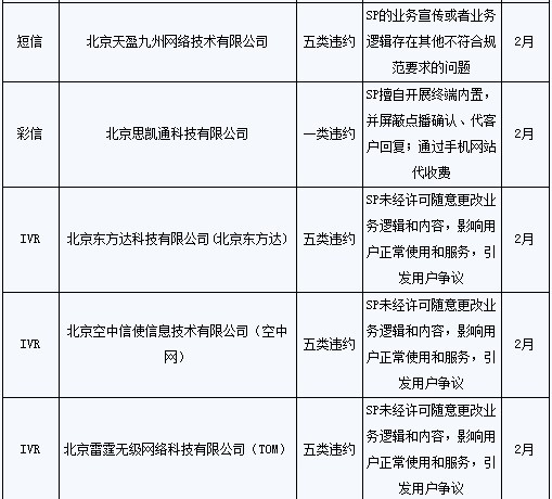 同時(shí),8家SP本地業(yè)務(wù)數(shù)據(jù)2010年5月在相關(guān)系統(tǒng)進(jìn)行暫停,月底進(jìn)行全面清除;其本地業(yè)務(wù)的計(jì)費(fèi)、結(jié)算和付款工作從2010年5月開始全部終止;此外,1年內(nèi)不接受該8家SP的新接入申請。