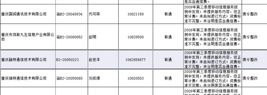 經(jīng)四川省工商行政管理局官方網(wǎng)站查詢發(fā)現(xiàn),成都融特通信技術(shù)有限公司注冊人資本為100萬,法人為趙世洋。注冊信息顯示,成都融特通信技術(shù)有限公司及其關(guān)聯(lián)公司——重慶融特通信技術(shù)有限公司,其主營業(yè)務(wù)為通信產(chǎn)品的技術(shù)開發(fā)。而搜狐IT獲得的一份資料表明,成都融特通信技術(shù)有限公司目前仍然是中國聯(lián)通廣東、重慶、四川等省市的增值業(yè)務(wù)提供商,并于2009年第三季度因違規(guī),被中國聯(lián)通處罰,要求其進(jìn)行整改。
