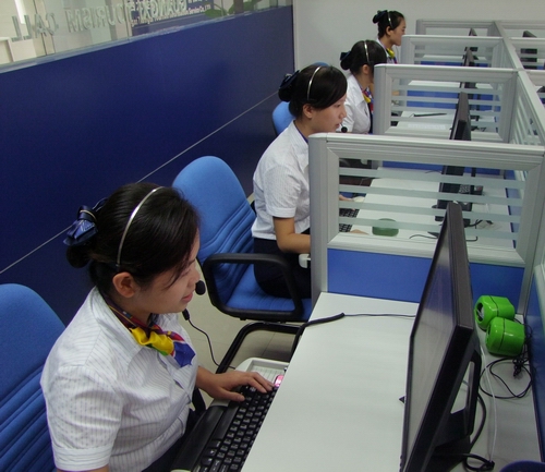 圖:呼叫中心工作人員在接聽(tīng)游客的咨詢(xún)電話(huà)