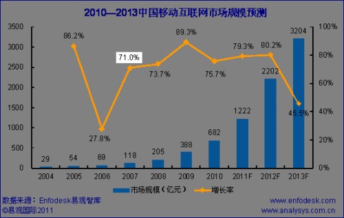 2013年中國移動互聯(lián)網市場規(guī)模將突破3000億