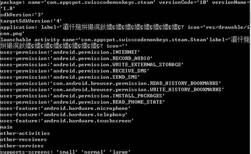 Jacky舉例,安智網(wǎng)的一款應用軟件名為屏幕水珠,在2010年7月份聯(lián)系原作者進行的漢化,由于效果不錯,一些廠商進行修改后,在代碼中加了收取和發(fā)送短信以及讀取和寫入書簽的權(quán)限。