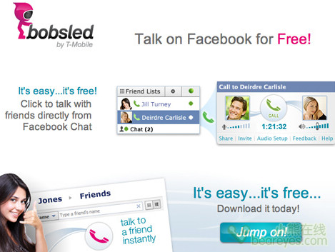 據(jù)國外媒體提供的最新消息顯示,就在今日T-Mobile運營商推出了一項相當(dāng)有趣的應(yīng)用VoIP電話服務(wù)——Bobsled,其實對于VoIP大家應(yīng)該都不會大陌生,不過T-Mobile推出的Bobsled有點另類,即允許Facebook用戶使用Facebook中的好友聯(lián)系通過VoIP進行通話。而且該應(yīng)用的網(wǎng)絡(luò)版支持將用戶的語音郵件以信息方式或者在“墻”上顯示的方式通知用戶,更加棒的是,接收人即便沒有在其Facebook中安裝該應(yīng)用也可以接收到相關(guān)的信息。