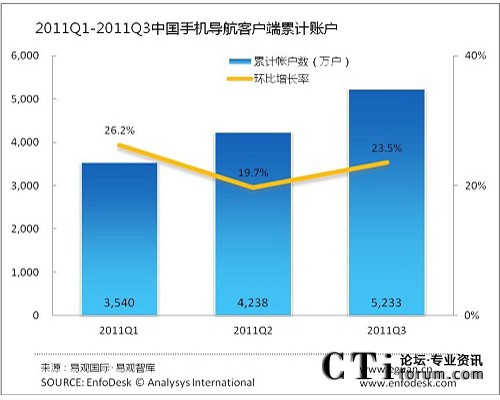 2011年3季度中國手機導航客戶端帳戶達5233萬