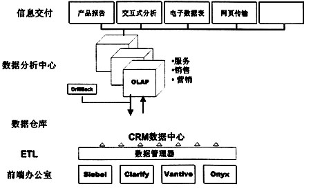 根據(jù)Hyperion的定義,CRM可以分為幾類,目前比較常見的是運營型CRM——前端辦公室與客戶間各種接觸點的垂直集成,包括通過多種連接方式的交付在內(nèi)的銷售、市場和服務,以及前、后端辦公室的無縫集成。Hyperion認為這些僅僅是CRM的初級功能,CRM的真正意義在于它能夠在運行過程中對相關數(shù)據(jù)進行分析,并提出智能化的建議,即分析型CRM。