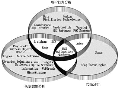 這一市場(chǎng)的供應(yīng)商目前主要分為兩大陣營:一類著眼于客戶行為傾向分析;另一類著眼于對(duì)客戶價(jià)值進(jìn)行評(píng)估。前者主要注重了解客戶的喜好,而后者則著重關(guān)注客戶對(duì)企業(yè)的潛在收益。