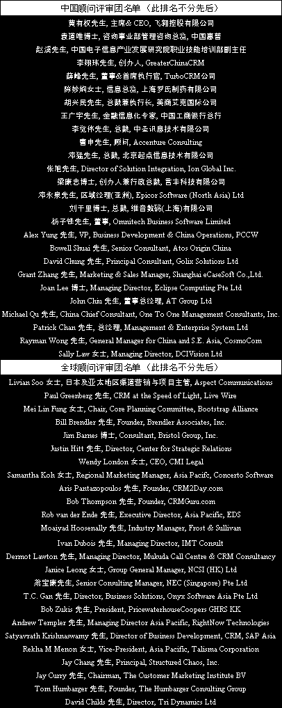 五、 權(quán)威性。GreaterChinaCRM邀請該機構(gòu)50多位(包括中國和外國)最權(quán)威的CRM專家擔當此次評選的評審團。