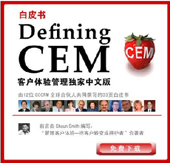 Management), 還僅僅是CRM的一種變體?一種時(shí)髦的說(shuō)法?還是時(shí)代的一種呼喚?帶著這些問(wèn)題,作為大中國(guó)地區(qū)CRM先行者,GCCRM組織12位全球?qū)<夜餐珜?xiě)了本白皮書(shū),期望能夠綜合的闡述這一熱門(mén)話題。如GCCRM總裁李翊瑋先生的“如何定義CEM”;