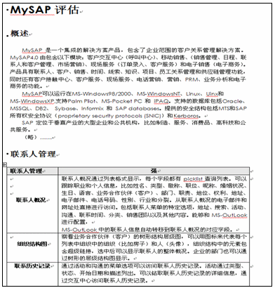 根據(jù)評估分?jǐn)?shù)值形成CMM評估表,為電子表格形式,帶有指標(biāo)編號和權(quán)重、分值,后面為實(shí)際評測分?jǐn)?shù)和備注,可以作為單獨(dú)的廠商系統(tǒng)評測,也可以作為橫向的多家廠商系統(tǒng)的水平評測。當(dāng)橫向的多家系統(tǒng)商評測時實(shí)際評測分?jǐn)?shù)欄為多家系統(tǒng)商評測分?jǐn)?shù)。
