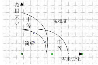如對(duì)于一些成長(zhǎng)型的企業(yè),他們由于業(yè)務(wù)、客戶(hù)等等都處于一個(gè)成長(zhǎng)期,所以在項(xiàng)目的實(shí)施過(guò)程中,這個(gè)需求變化可能會(huì)比較頻繁。根據(jù)筆者的經(jīng)驗(yàn),一個(gè)成長(zhǎng)型的企業(yè),從需求提出到最后項(xiàng)目上線(xiàn),中間可能50%以上的需求會(huì)進(jìn)行不同程度的調(diào)整。毋庸置疑,這就會(huì)給項(xiàng)目帶來(lái)不少的挑戰(zhàn)。從理論上說(shuō),實(shí)施顧問(wèn)遇到這種情況,應(yīng)該建議企業(yè)先暫時(shí)擱置這個(gè)項(xiàng)目。等到需求穩(wěn)定了,再上這個(gè)項(xiàng)目。但是實(shí)施顧問(wèn)往往不會(huì)這么做,因?yàn)檫@會(huì)影響到他們自己企業(yè)的業(yè)績(jī)。為此實(shí)施顧問(wèn)在遇到這種情況的時(shí)候,只有退而求其次了。即當(dāng)需求變化比較大的時(shí)候,只有通過(guò)縮小項(xiàng)目的范圍,來(lái)減少需求的絕對(duì)數(shù)量。需求的絕對(duì)數(shù)量減少了,那么需求的變化量也會(huì)降低。從而可以達(dá)到降低項(xiàng)目難度的目標(biāo),可以將項(xiàng)目的難度設(shè)置在中等難度這個(gè)級(jí)別。