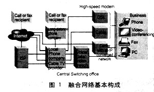 。。在網(wǎng)絡(luò)的不同層次,融合目標(biāo)可以歸納為:傳輸技術(shù)趨向一致,網(wǎng)絡(luò)層面實現(xiàn)互連互通,業(yè)務(wù)層上互相交叉,應(yīng)用層上趨向使用統(tǒng)一的協(xié)議與應(yīng)用軟件。傳輸通信層和中間網(wǎng)絡(luò)層是融合主要進(jìn)行的層次。圖1為融合網(wǎng)絡(luò)的基本構(gòu)成。