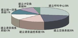 目前,語音卡已經廣泛應用于各行各業(yè),應用尤其以呼叫中心應用最為典型。 呼叫中心普遍應用于各種行業(yè)部門中,例如:電信、金融、政府機關、醫(yī)療、保險部門、電力等及其他一些應用,像121天氣預報等。對用戶的抽樣調查中,已經使用語音卡的用戶占58%,計劃使用的占26%,而語音卡的應用以前臺、客戶服務部和售后服務部應用居多,可見語音卡的應用市場潛力非常巨大。語音卡的應用中主要以建立呼叫中心和交換系統(tǒng)為主,常用于查詢、咨詢和電話委托交易等。