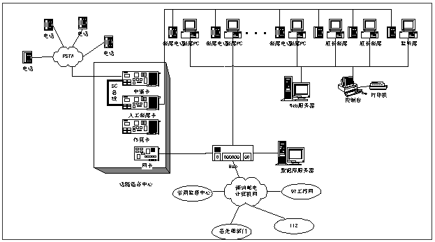 系統(tǒng)包括投訴建議處理、話路控制、秘書臺、電信業(yè)務咨詢、綜合統(tǒng)計、公告板、Web處理等業(yè)務模塊,以及系統(tǒng)用戶管理、錄音提取、基本設置、傳真管理等管理模塊,并實現(xiàn)了與97系統(tǒng)、112系統(tǒng)的互聯(lián)與資源共享。系統(tǒng)自九八年年底試運行以來,運行穩(wěn)定,為180臺受理用戶咨詢投訴的處理工作帶來較大幫助,基本解決了用戶投訴、查詢難的問題,提高了電信服務質(zhì)量,改善電信行業(yè)形象。