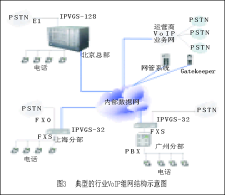 我國現(xiàn)有很多擁有自己專網(wǎng)的行業(yè),比如金融、能源和一些政府機(jī)構(gòu),它們正是通過這樣的方案來實(shí)現(xiàn)內(nèi)部通話的。這些行業(yè)目前也正是中國VoIP市場(chǎng)的主力,由于行業(yè)用戶的規(guī)模很大,目前中國的很多行業(yè)實(shí)際上都有一套運(yùn)營級(jí)的VoIP網(wǎng)絡(luò)。圖3是一個(gè)典型的行業(yè)VoIP組網(wǎng)結(jié)構(gòu)圖。