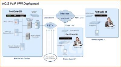 KOIS利用FortiGate網(wǎng)絡(luò)安全網(wǎng)關(guān)在保持所需要的性能級別和系統(tǒng)需求的基礎(chǔ)上全面保護(hù)了VPN的數(shù)據(jù)網(wǎng)絡(luò)。FortiGate-300網(wǎng)絡(luò)安全網(wǎng)關(guān)安全在呼叫中心,F(xiàn)ortiGate-50安裝在每個(gè)家庭代理中。