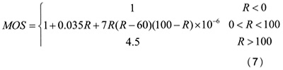 平均主觀值MOS是1-5之間的數(shù),1是語(yǔ)音質(zhì)量最差的,5是語(yǔ)音質(zhì)量最好的。R值可以通過(guò)下面的公式轉(zhuǎn)化成MOS分: