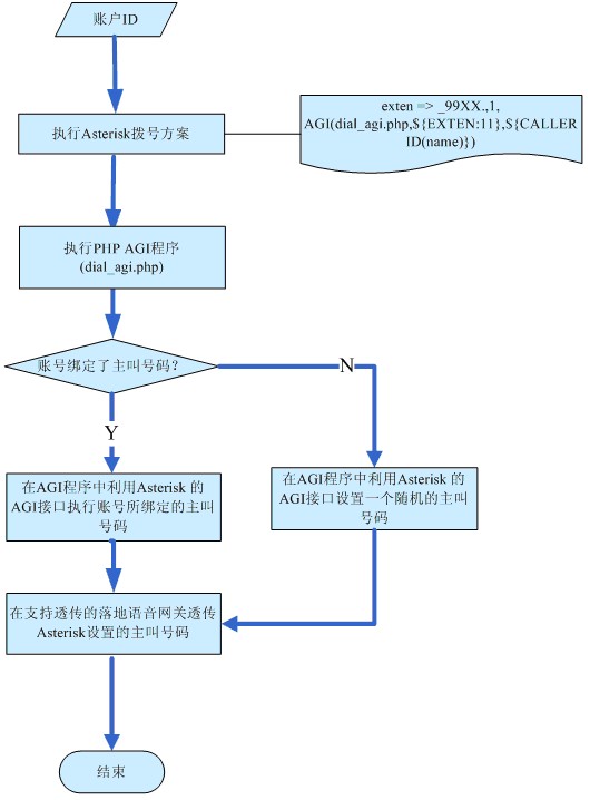 Asterisk的后臺PHP AGI程序的詳細設(shè)計主叫號碼透傳流程設(shè)計如圖2所示。