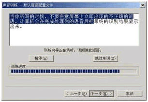 點(diǎn)擊"下一步"按鈕后,就會(huì)看到如圖11所示的對(duì)話(huà)框,請(qǐng)根據(jù)窗口中的提示對(duì)話(huà)信息朗讀,如果朗讀正確,對(duì)話(huà)信息將會(huì)反白顯示,如果你朗讀錯(cuò)誤,請(qǐng)重新進(jìn)行。