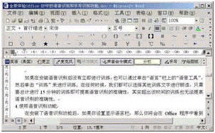 在安裝了語(yǔ)音識(shí)別功能后,如果你設(shè)置顯示語(yǔ)言欄,那么你將會(huì)在Office程序中看到如圖14所示的麥克風(fēng)圖標(biāo)(如果未看到,請(qǐng)從"工具"菜單中選中"語(yǔ)音"項(xiàng)),工作時(shí)將在"聽(tīng)寫(xiě)"和"聲音命令"模式之間進(jìn)行切換。