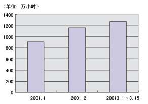 圖3 2001年1月~3月15日OICQ用戶每日平均在線時(shí)間