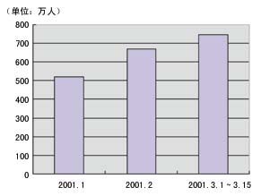 圖4 2001年1月~3月15日OICQ平均每日在線人數(shù)