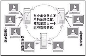 Click to meet有雙重作用,一是給用戶的一個操作界面,基于這一技術,用戶只需輕松點擊鼠標,就能通過PC加入一個實時的交互式的會議,無需關心其他與會者的位置,便能與其共享數(shù)據(jù)和應用。Web會議需要對用戶進行的培訓幾乎為零。第二是給管理員使用,可以對整個會議過程的流量、計費進行管理。