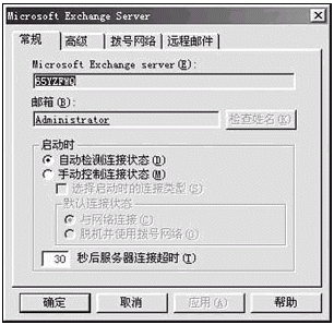 教師將在一臺(tái)裝有攝像頭、麥克風(fēng)的局域網(wǎng)終端(教師機(jī))上安排會(huì)議并進(jìn)行授課。會(huì)議的安排和召開(kāi)必須利用Outlook中的日程安排功能。第一次運(yùn)行Outlook時(shí)將出現(xiàn)設(shè)置向?qū)Т翱,選擇“用于企業(yè)工作組”,選用“Exchange Server”服務(wù),在Exchange服務(wù)器名中填入服務(wù)器的計(jì)算機(jī)名“65yzfwq”,郵箱則必須填“Administrator”,輸入相應(yīng)密碼(如圖2所示)。