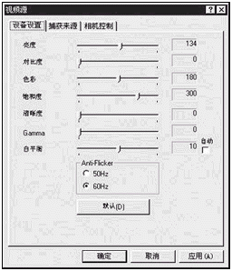 4.選擇視頻源。在這里你可以選擇你錄制時要采用的視頻設備,然后對視頻設備的亮度、對比度等進行有效地調(diào)整。