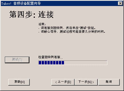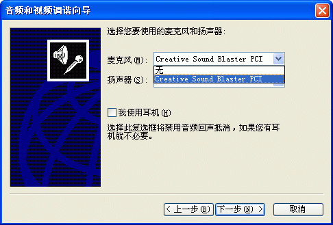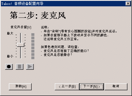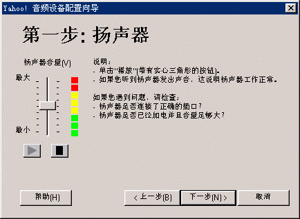 選擇幫助->音頻設(shè)備配置向?qū)?圖2),會彈出“音頻設(shè)備配置向?qū)А贝翱?圖3),這個向?qū)䦷椭銓P(yáng)聲器、麥克風(fēng)、回音、網(wǎng)絡(luò)連接等項目進(jìn)行標(biāo)準(zhǔn)的測試和設(shè)置。