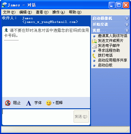 在對你的音、視頻設(shè)備檢查無誤、調(diào)試完畢后,恭喜你!你可以馬上給你的朋友打可視電話了。點(diǎn)擊在線好友的Yahoo! ID,就會彈出一個訊息發(fā)送框(圖6),在菜單欄下面的幾個按鈕中有“視頻”和“語音”兩個按鈕。沒錯!就是它們了,點(diǎn)吧!點(diǎn)擊“視頻”按鈕后彈出了剛才的“我的即時影像”窗口;點(diǎn)擊“語音”按鈕后,訊息發(fā)送框中間部分會多出一條語音顯示和控制的狀態(tài)欄。(見圖7)對方只需右鍵單擊朋友列表中你的Yahoo! ID,并選擇“觀看即時影像”即可看到你的影像并同時聽到你的聲音。OK,開始你們愉快的交流吧。)