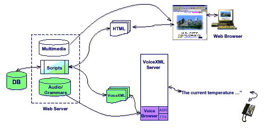 年初,IBM, 摩托羅拉, 朗訊, 和 AT&T 成立了 Voice XML 論壇, 來(lái)協(xié)調(diào)現(xiàn)有的語(yǔ)音技術(shù)使得可以通過(guò)聲音和電話訪問(wèn)因特網(wǎng)。語(yǔ)音技術(shù)不但讓那些由于環(huán)境或生理限制無(wú)法使用圖形化瀏覽器的人得以訪問(wèn)