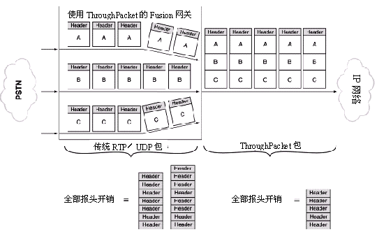 Clarent ThroughPacket是Clarent公司擁有專利權(quán)的IP多路復用算法,提供了一個讓數(shù)據(jù)和包的速率失效的解決方案。Clarent ThroughPacket通過把來自多個Fusion語音通道的語音載荷組合進一個大包來實現(xiàn)這一功能。需要說明的是:Clarent ThroughPacket是Clarent公司和NMS公司合作開發(fā)的,NMS公司完全有權(quán)把這一技術(shù)應(yīng)用于Fusion平臺以及其它的NMS產(chǎn)品之中。