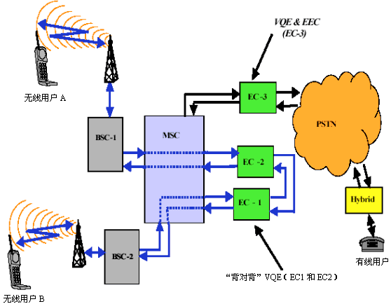 使消費(fèi)者滿意并不斷擴(kuò)大用戶基數(shù),抱著這一目的,很多無線服務(wù)提供商求助于補(bǔ)救措施,對2G的缺點(diǎn)進(jìn)行補(bǔ)償。與此同時(shí),數(shù)字無線語音與PSTN(公共交換電話網(wǎng))的連接要求用到電回聲抑制器(EEC),基于這一事實(shí),人們將VQE