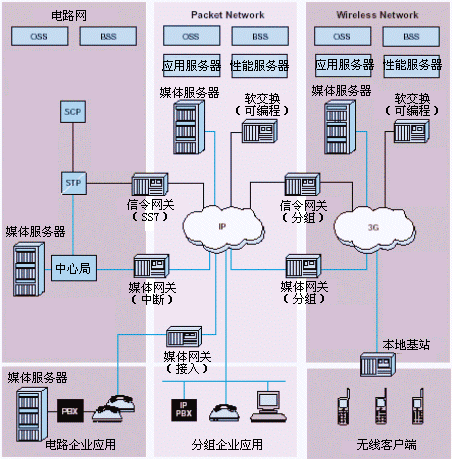 - 特征服務(wù)器--從現(xiàn)有電路交換網(wǎng)絡(luò)實現(xiàn)信號控制點(SCP)業(yè)務(wù)以及由本地交換和接入?yún)R接交換機(jī)提供的高級業(yè)務(wù)。