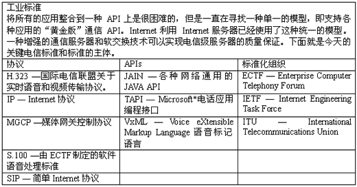 新的標準像是Parlay,VoiceXML和WAP正在重新定義--和開始定義--業(yè)務(wù)提供商的環(huán)境。整個的網(wǎng)絡(luò)結(jié)構(gòu)正在進化成一個基于標準模塊,協(xié)議,和編程接口的開放的體系。