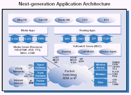 Internet一個深層次的發(fā)展是開放的Internet服務(wù)器,它給數(shù)以百萬計的PC瀏覽器提供高級應(yīng)用程序和Internet無窮內(nèi)容的接入能力。做為重新構(gòu)建話音網(wǎng)絡(luò)的一部分,開放的軟交換--提供基于軟件的交換服務(wù)--也將會具有為數(shù)以百萬計的無線和有線電話分送數(shù)據(jù)的能力。對于用戶來說,其結(jié)果就是他們將很容易的通過語音接入Internet和具有豐富的語音服務(wù)的環(huán)境。