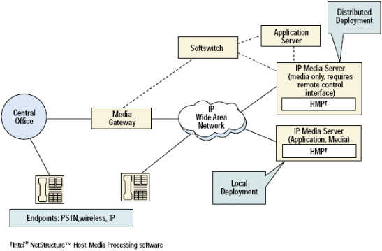 一個IP媒體服務器是在網絡中的終結IP連接的節(jié)點. 根據客戶環(huán)境的不同(服務提供商或企業(yè)), IP媒體服務器可以用很多方法來實現(xiàn).
