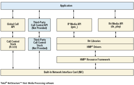 應用程序在HMP軟件上開發(fā)時使用相同的R4和GlobalCall API, 和Dialogic Dialogic板卡